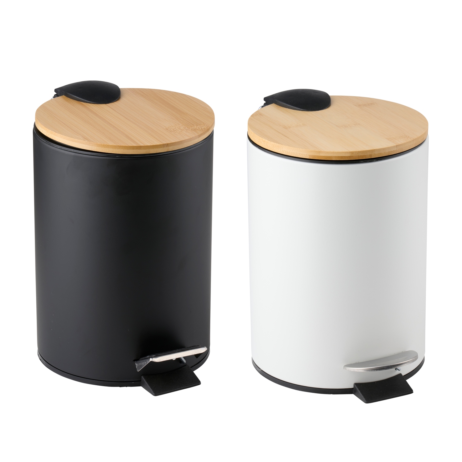 Προσθέστε στυλ στο μπάνιο σας με αυτόν τον κάδο πεντάλ, διαθέσιμο σε μαύρο και λευκό χρώμα με καπάκι από μπαμπού. Ιδανικός για το μπάνιο, προσφέρει λειτουργικότητα και κομψότητα.
