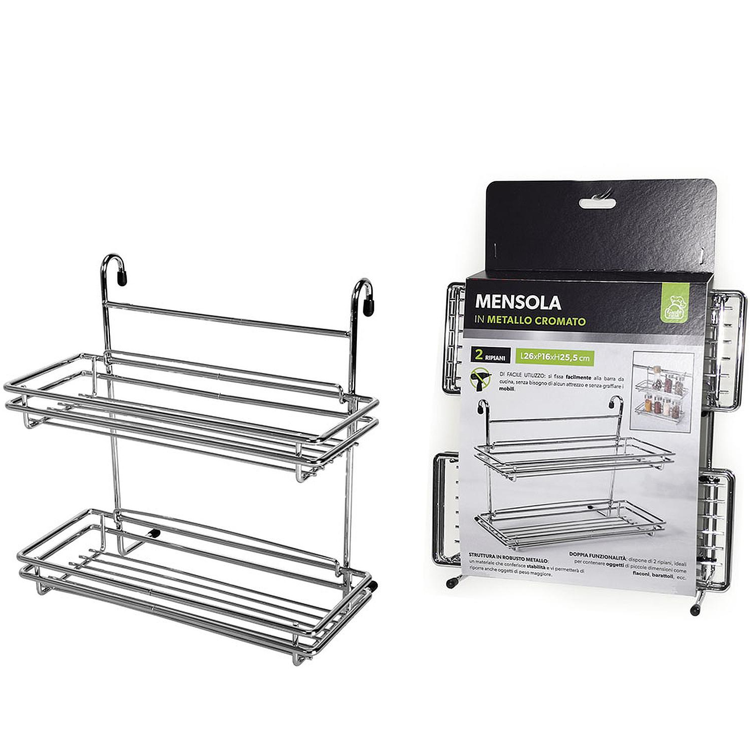 Ράφι κρεμαστό διπλό ασημί μέταλλο 26x16x25.5cm.