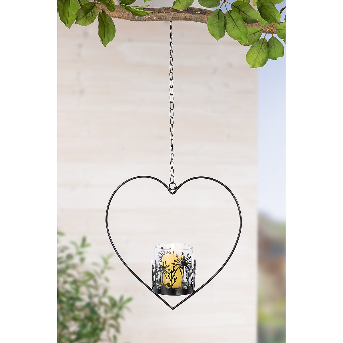 Διακοσμητικό κρεμαστό καρδιά με μικρό φανάρι μαύρο μέταλλο 7.5x24.5x25cm.