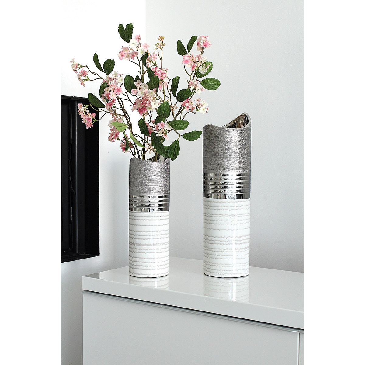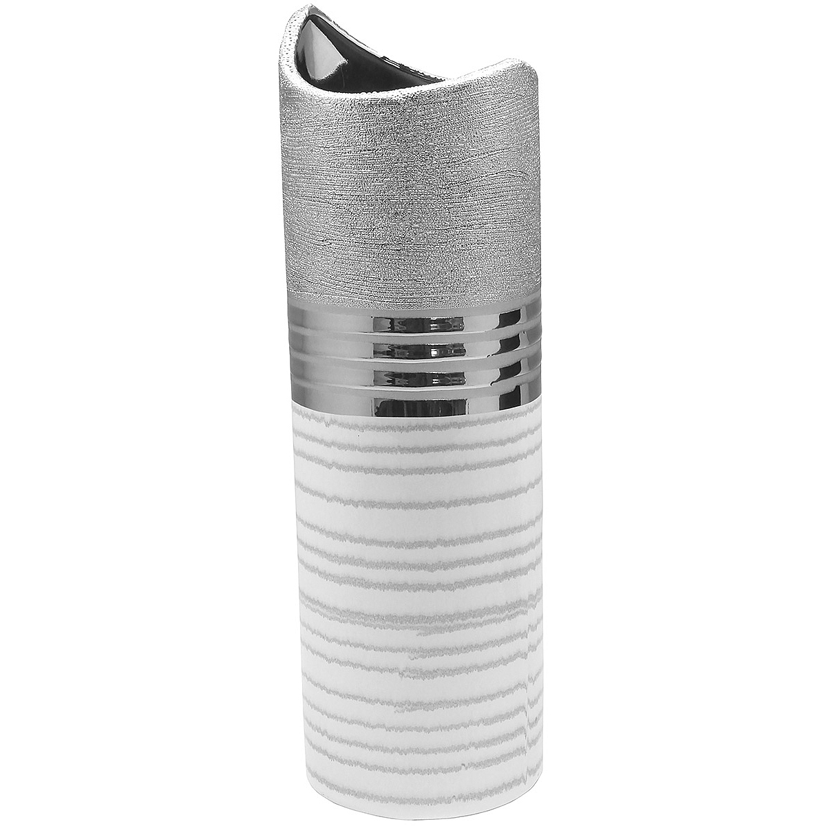 Βάζο ασημί/λευκό κεραμικό 11x11x34cm.