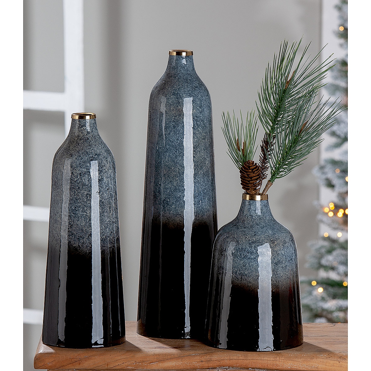 Βάζο κωνικό μαύρο/γκρι μέταλλο 25cm.