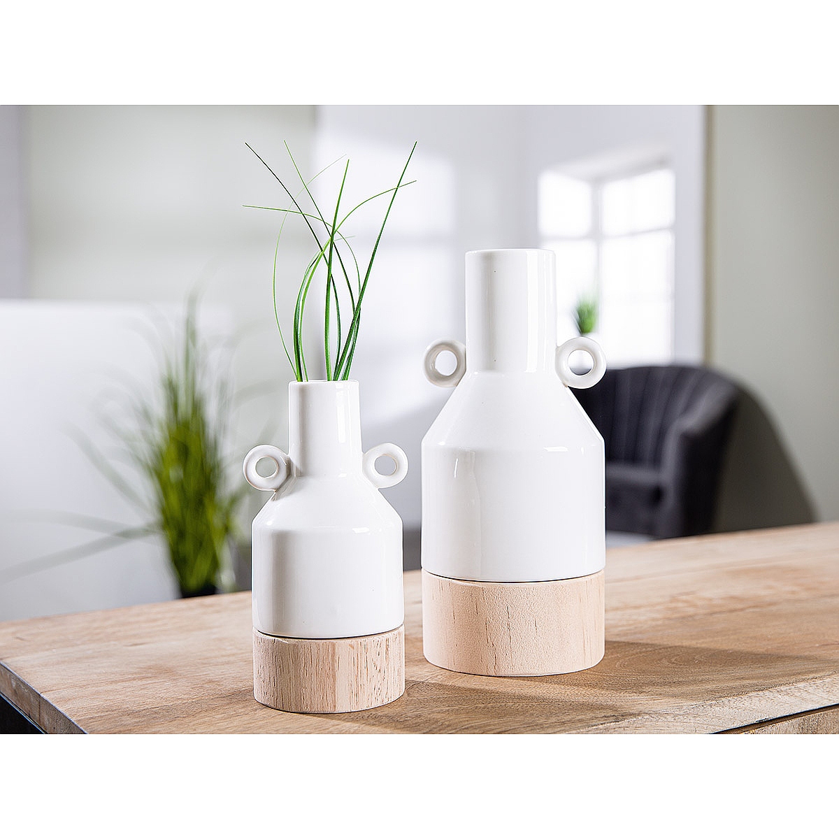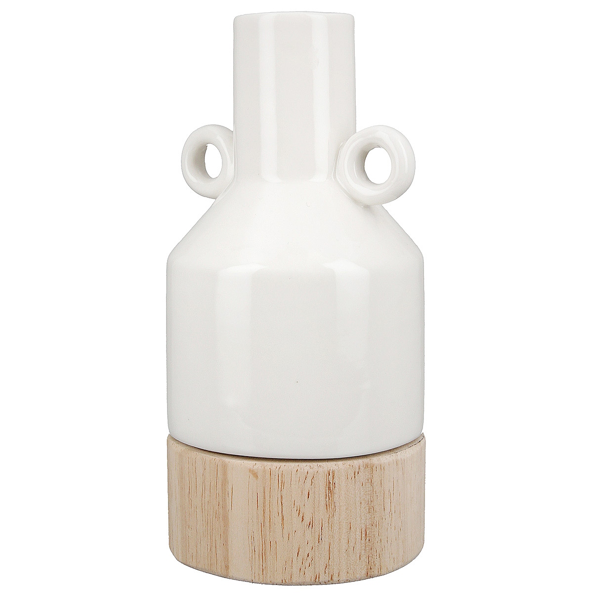 Βάζο λευκό/φυσικό πορσελάνη/ξύλο 8x8.5x16.5cm.
