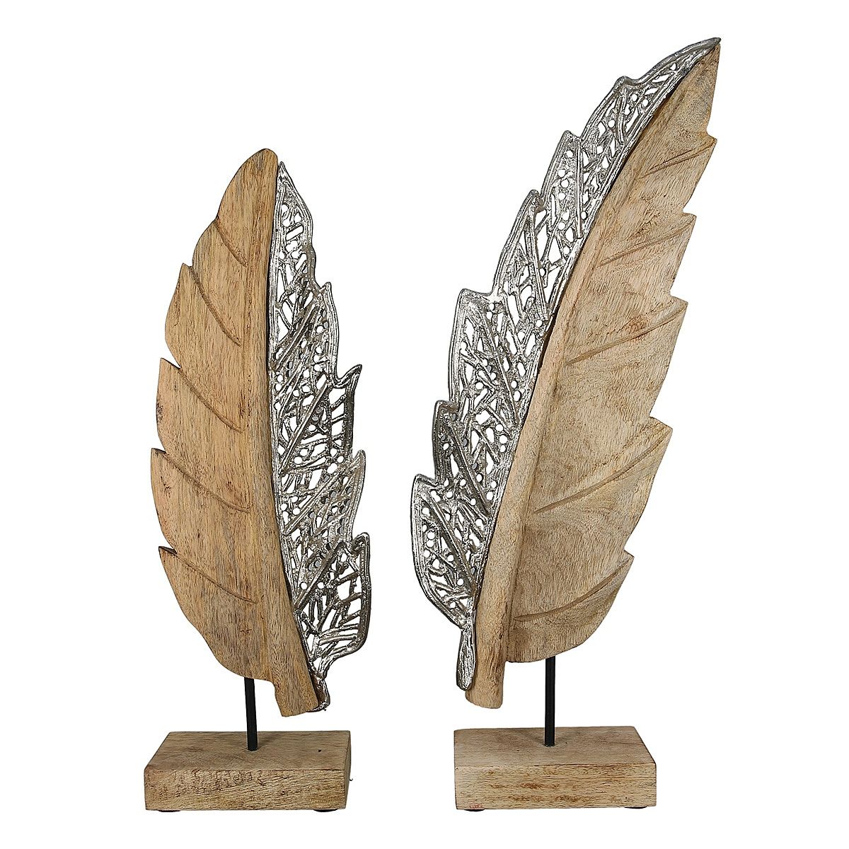 Διακοσμητικό φύλλο σε βάση φυσικό/ασημί ξύλο/αλουμίνιο 9x15.5x52cm.