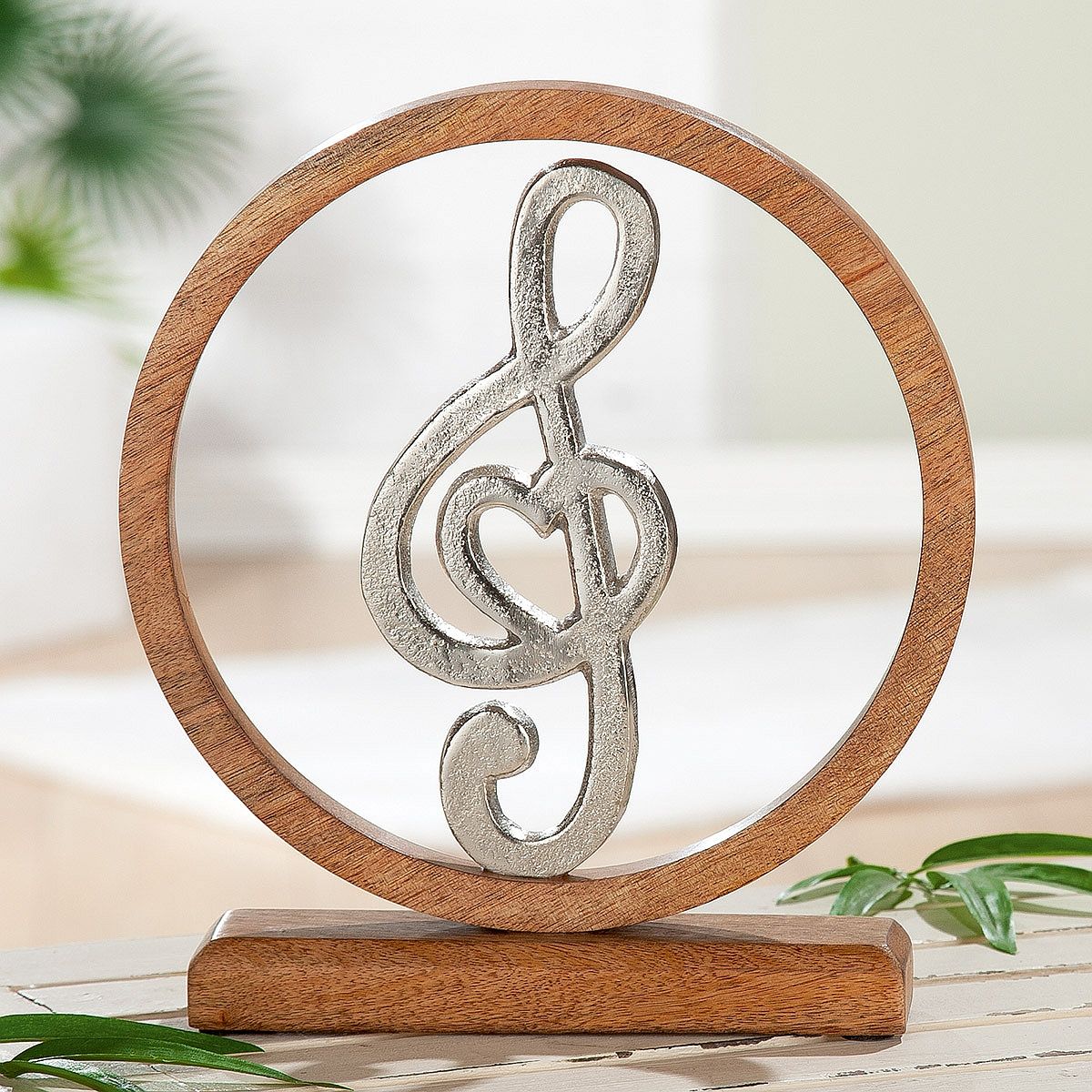 Διακοσμητικό μουσική νότα σε κύκλο ασημί/φυσικό αλουμίνιο/ξύλο 26x28cm.