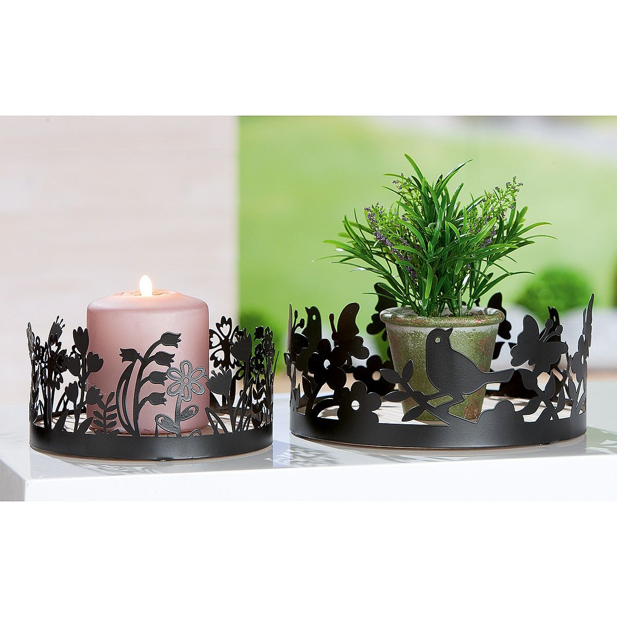 Βάση γλάστρας με διακόσμηση μαύρο/φυσικό μέταλλο/ξύλο Φ20x9.5cm.
