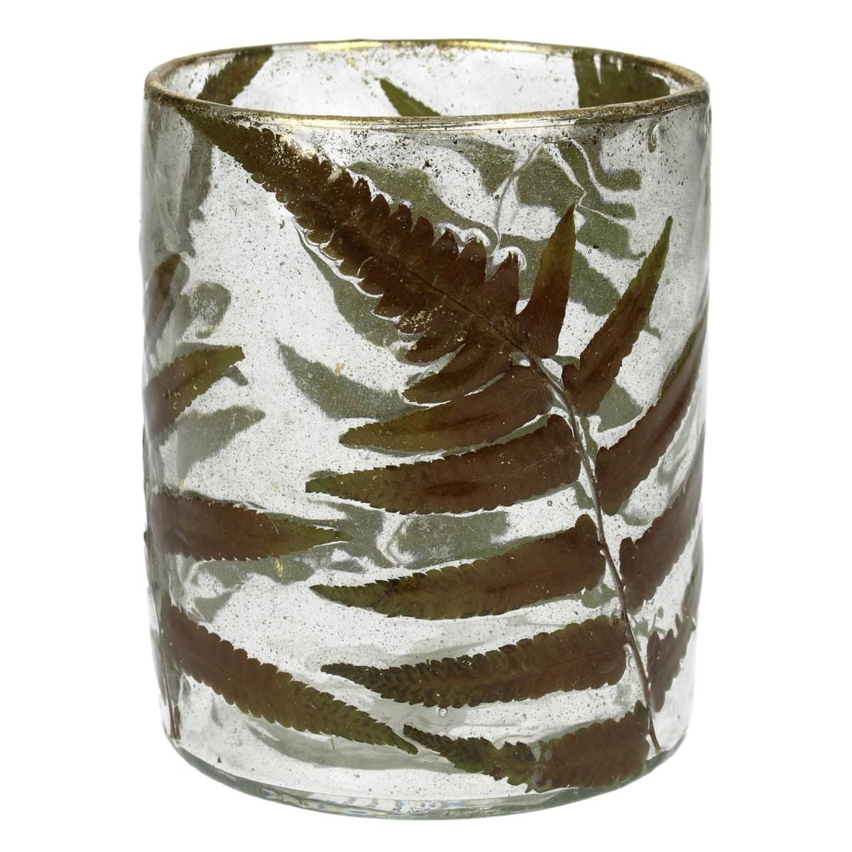 Κηροπήγιο φύλλα τσαγιού διάφανο γυαλί 10x10x13cm.