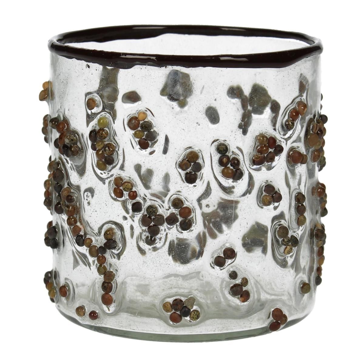 Κηροπήγιο φύλλα τσαγιού καφέ γυαλί 8x8x8cm.