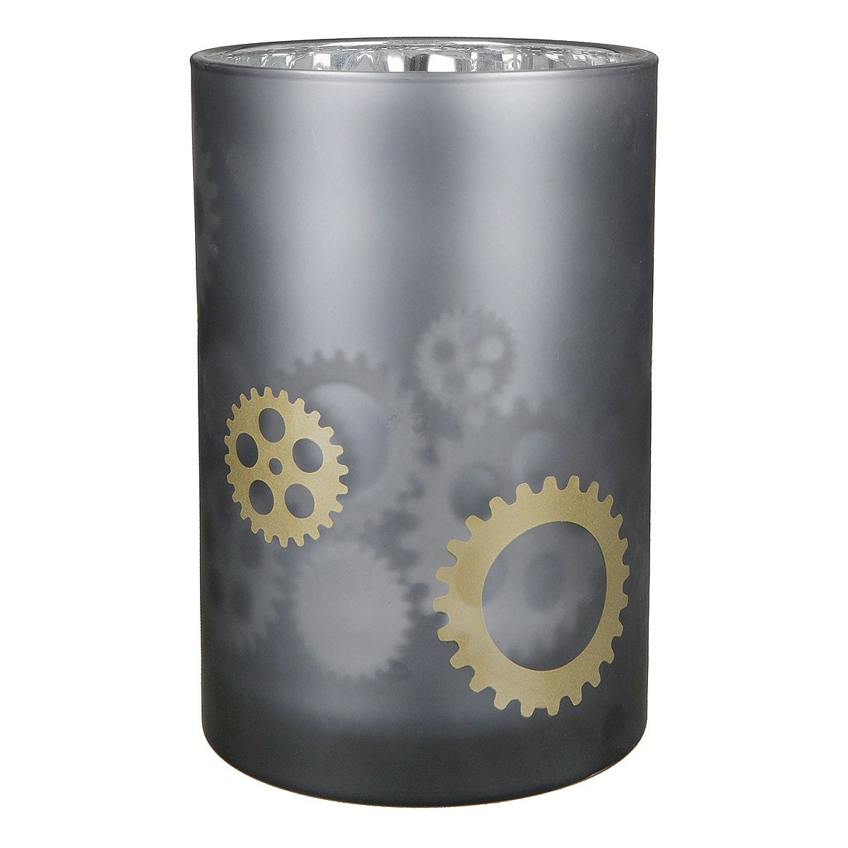 Κηροπήγιο με διακόσμηση γρανάζια γκρι γυαλί Φ12x18cm.