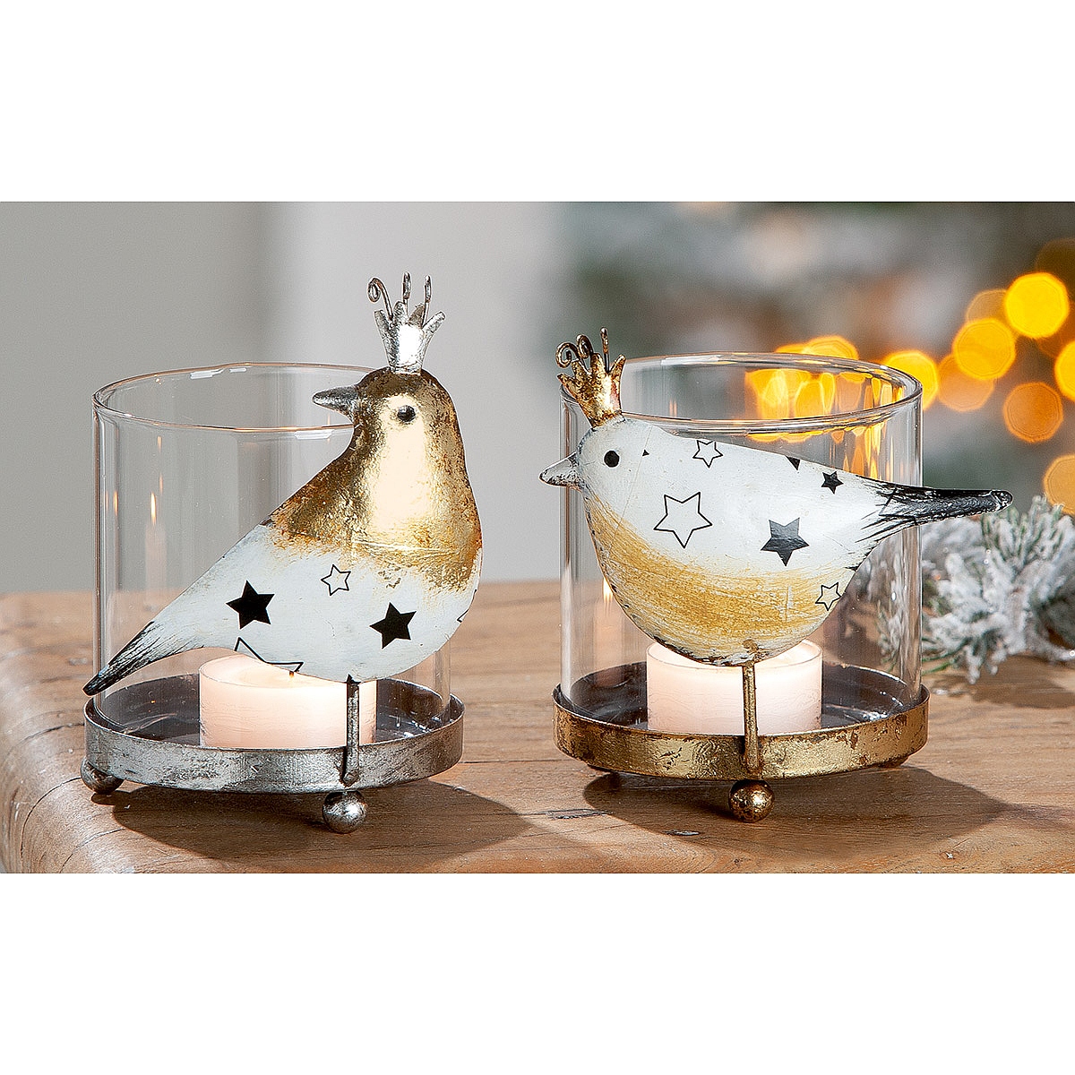 Κηροπήγιο με διακόσμηση πουλί μέταλλο/γυαλί 9x10.5x11cm σε 2 χρώματα.