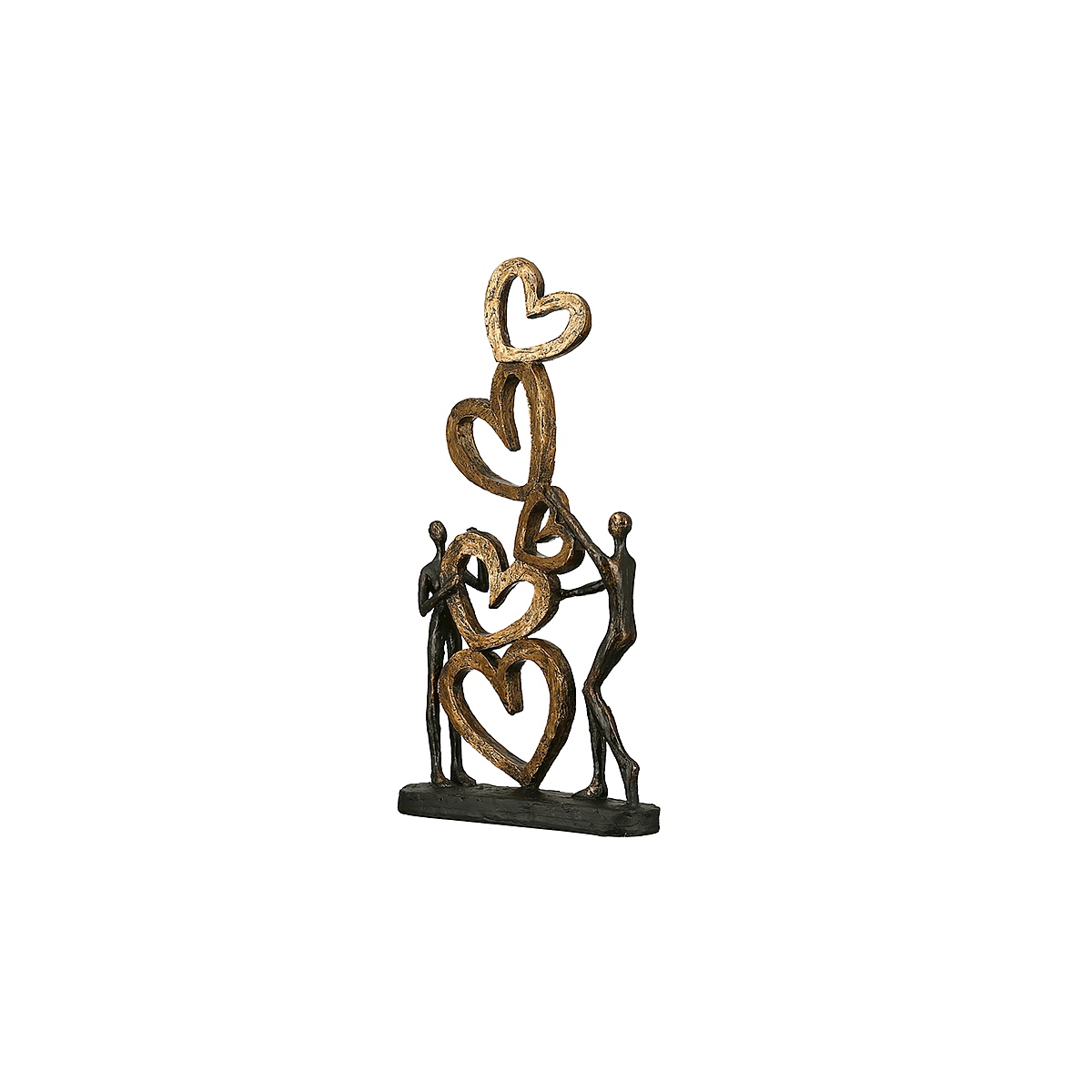 Διακοσμητικό φιγούρες κρατούν καρδιές μπρονζέ/χρυσό polyresin 6.5x21x41cm.