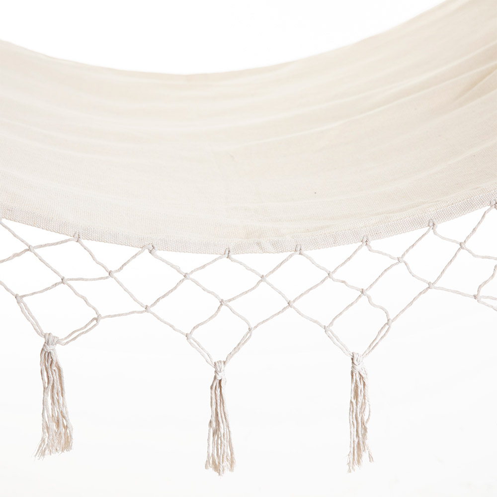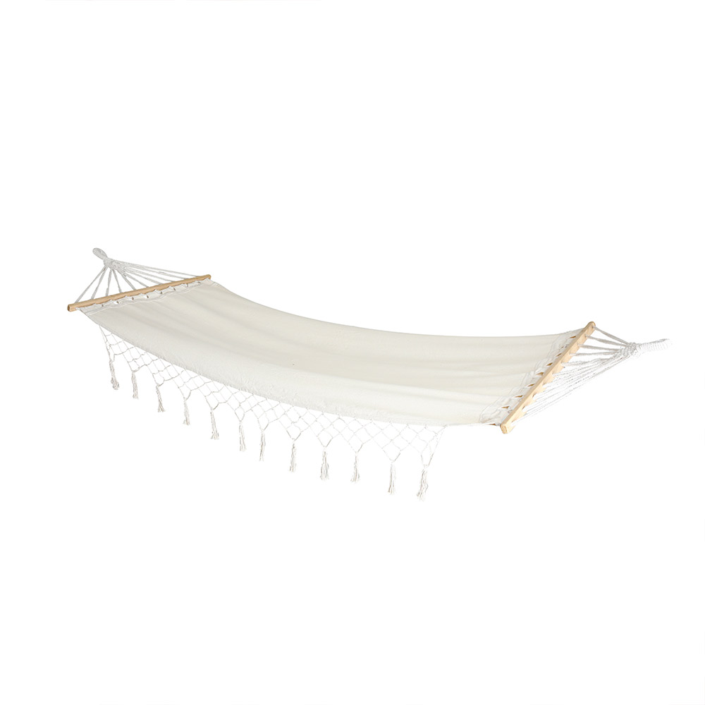 Η αιώρα BURGH της ArteLibre προσφέρει άνεση και χαλάρωση στον εξωτερικό σας χώρο. Κατασκευασμένη από ανθεκτικό polycotton σε λευκό χρώμα, προσφέρει μια κομψή και μοντέρνα αισθητική. Με διαστάσεις 270x80cm, η αιώρα αυτή είναι ιδιαίτερα αναπαυτική με ευρύχωρο σώμα και μπορεί να υποστηρίξει μέγιστο επιτρεπτό βάρος 120kg. Περιλαμβάνει ξύλο στις άκρες για επιπλέον σταθερότητα.