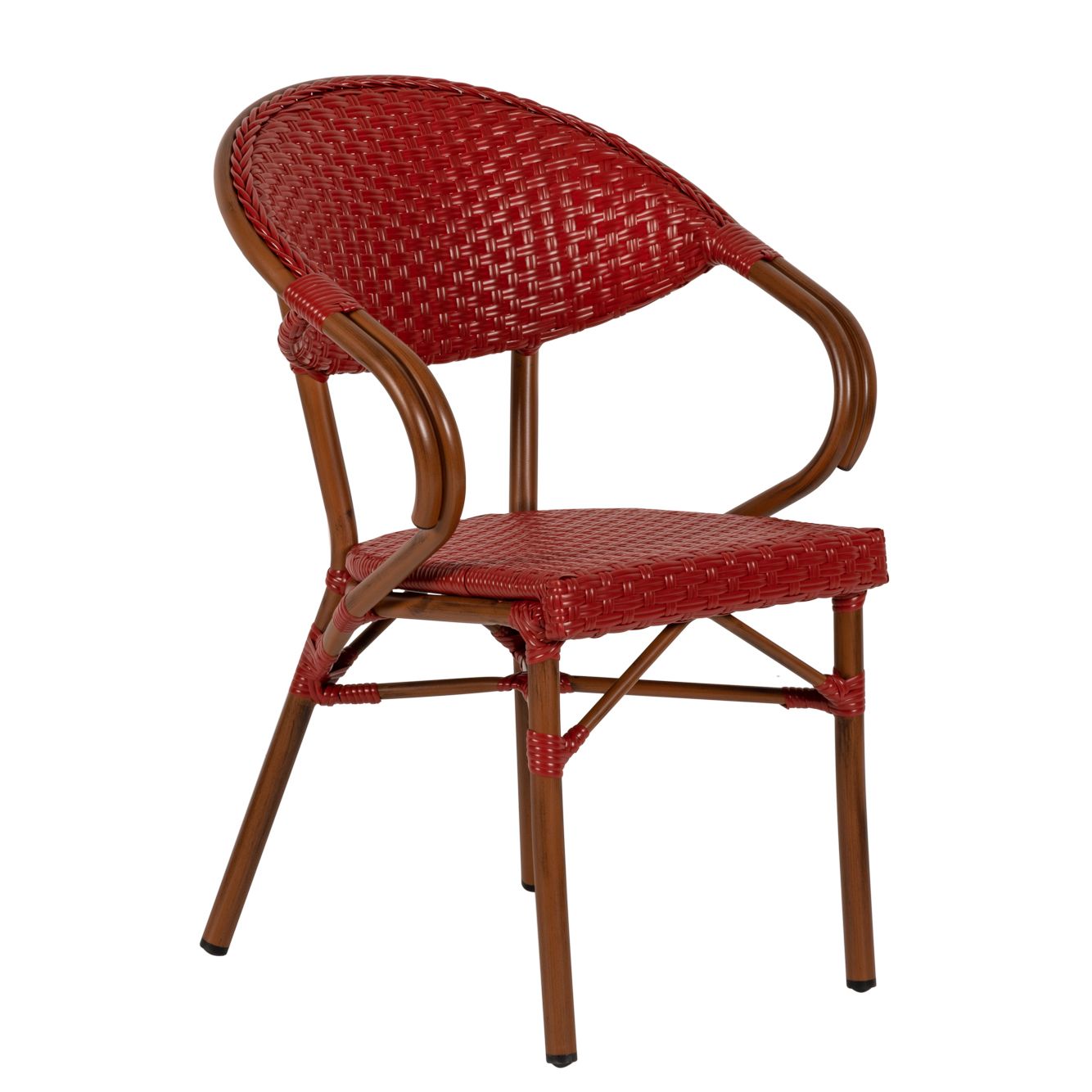 Πολυθρόνα κήπου MUTUMA κόκκινο/μπαμπού αλουμίνιο/rattan 57x60x82cm.