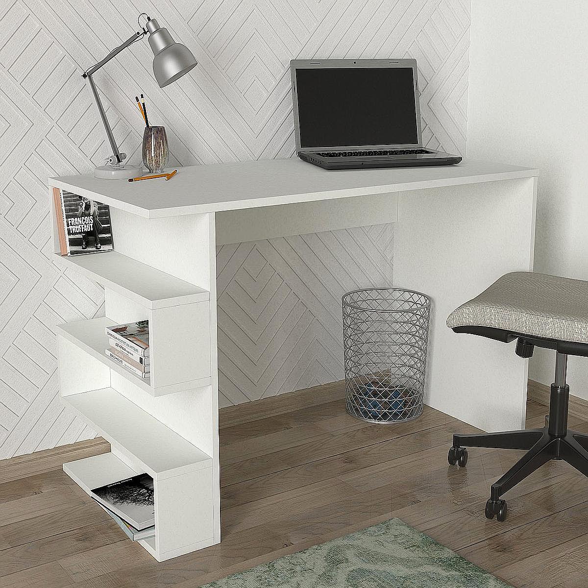 Γραφείο με στιβαρό σκελετό που εξασφαλίζει μια σταθερή επιφάνεια εργασίας. Η επιφάνεια εργασίας προσφέρει μεγάλο χώρο για να κάνετε τις καθημερινές σας εργασίες άνετα και γρήγορα. Η ραφιέρα στη μια πλευρά του προσφέρει άπλετο αποθηκευτικό χώρο για την αποθήκευση βιβλίων, εγγράφων και χρηστικών αντικειμένων.
