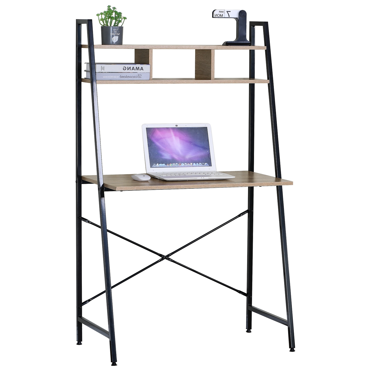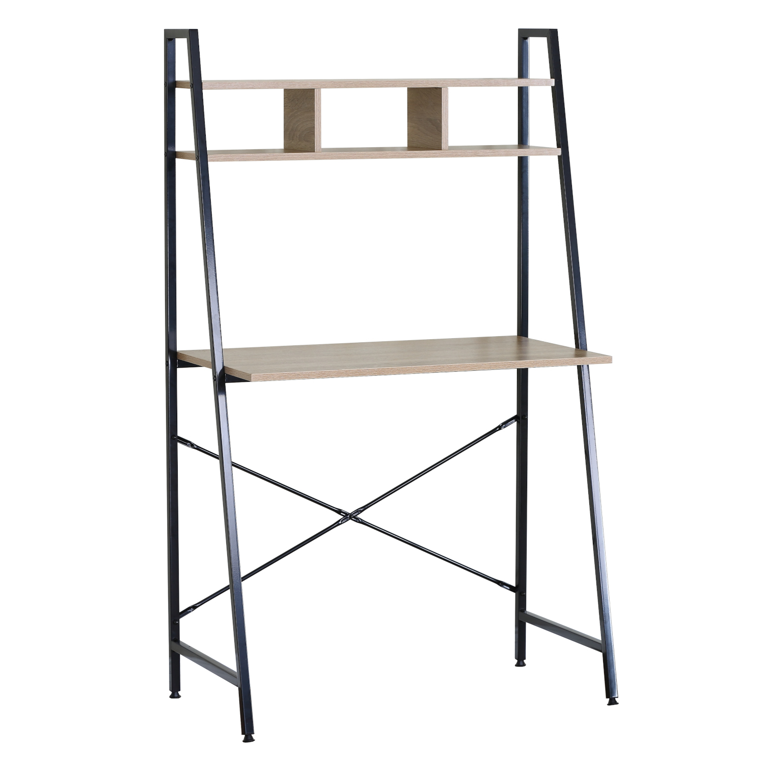 Γραφείο ArteLibre LYNDALE Με Ράφια Δρυς/Μαύρο Μοριοσανίδα/Μέταλλο 84x46x142cm