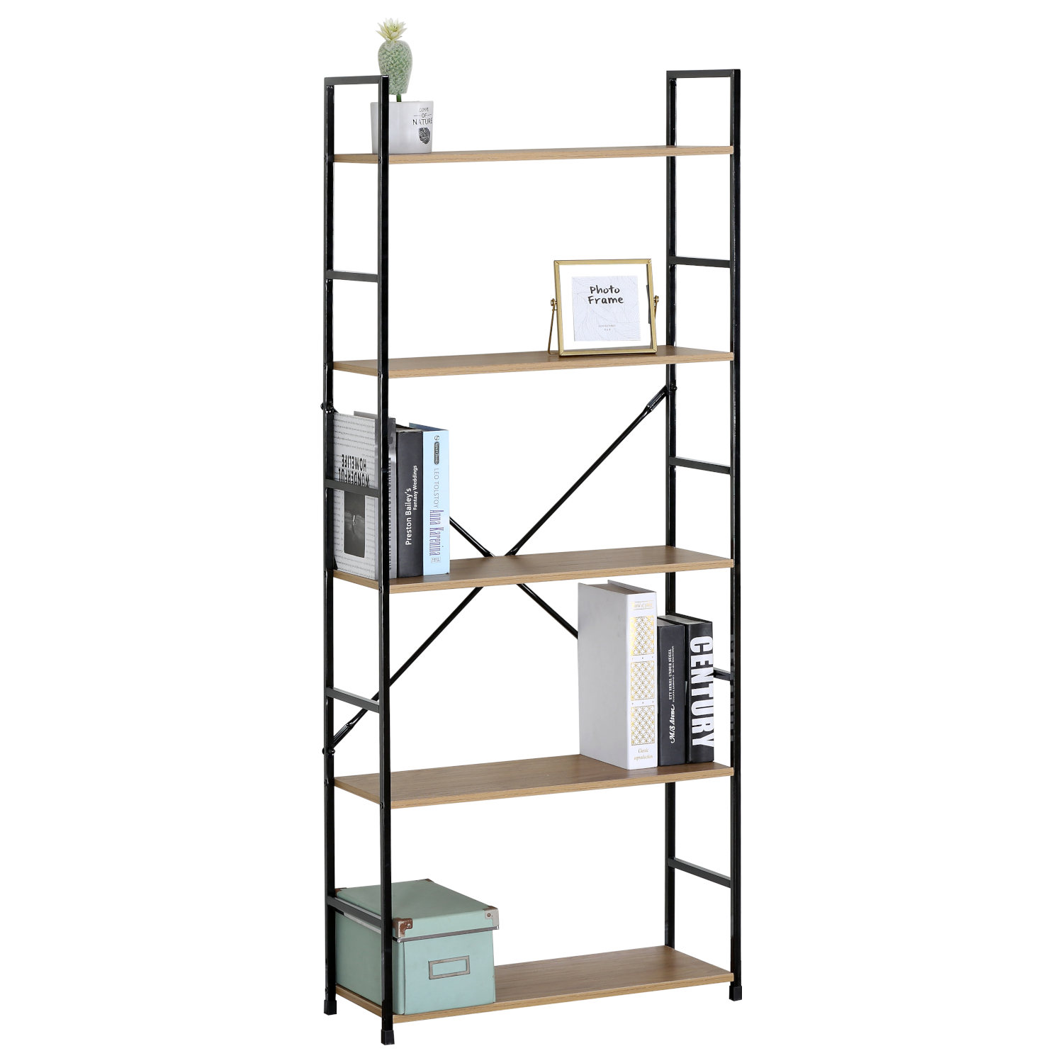 Ραφιέρα ArteLibre DARROW Με 5 Ράφια Δρυς/Μαύρο Μοριοσανίδα/Μέταλλο 58.6x23.5x144cm