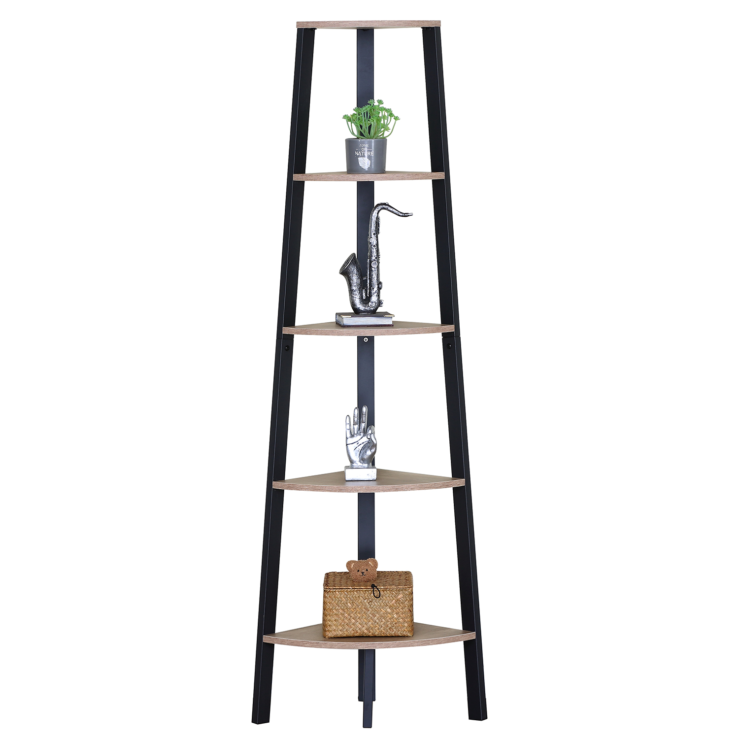 - Φινίρισμα δρυός και μαύρο μεταλλικό πλαίσιο