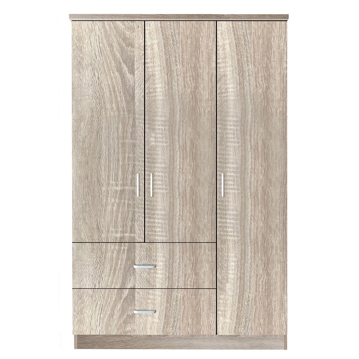 Ντουλάπα ρούχων τρίφυλλη κατασκευασμένη από οικολογική μοριοσανίδα. Minimal σχεδιασμός σε φυσικό χρώμα που θα δέσει αρμονικά με το χώρο σας. Περιλαμβάνει δυο πόρτες με έναν ενιαίο χώρο με ράγα ενώ το δεξί φύλλο προσφέρει στο εσωτερκό του ράφια. Επιπλέον διαθέτει δύο μεγάλα συρτάρια για ακόμη περισσότερο αποθηκευτικό χώρο. Το προιόν μπορεί να χρησιμοποιηθεί για οικιακή και επαγγελματική χρήση (ξενοδοχεία, ξενώνες, airbnb κτλ).