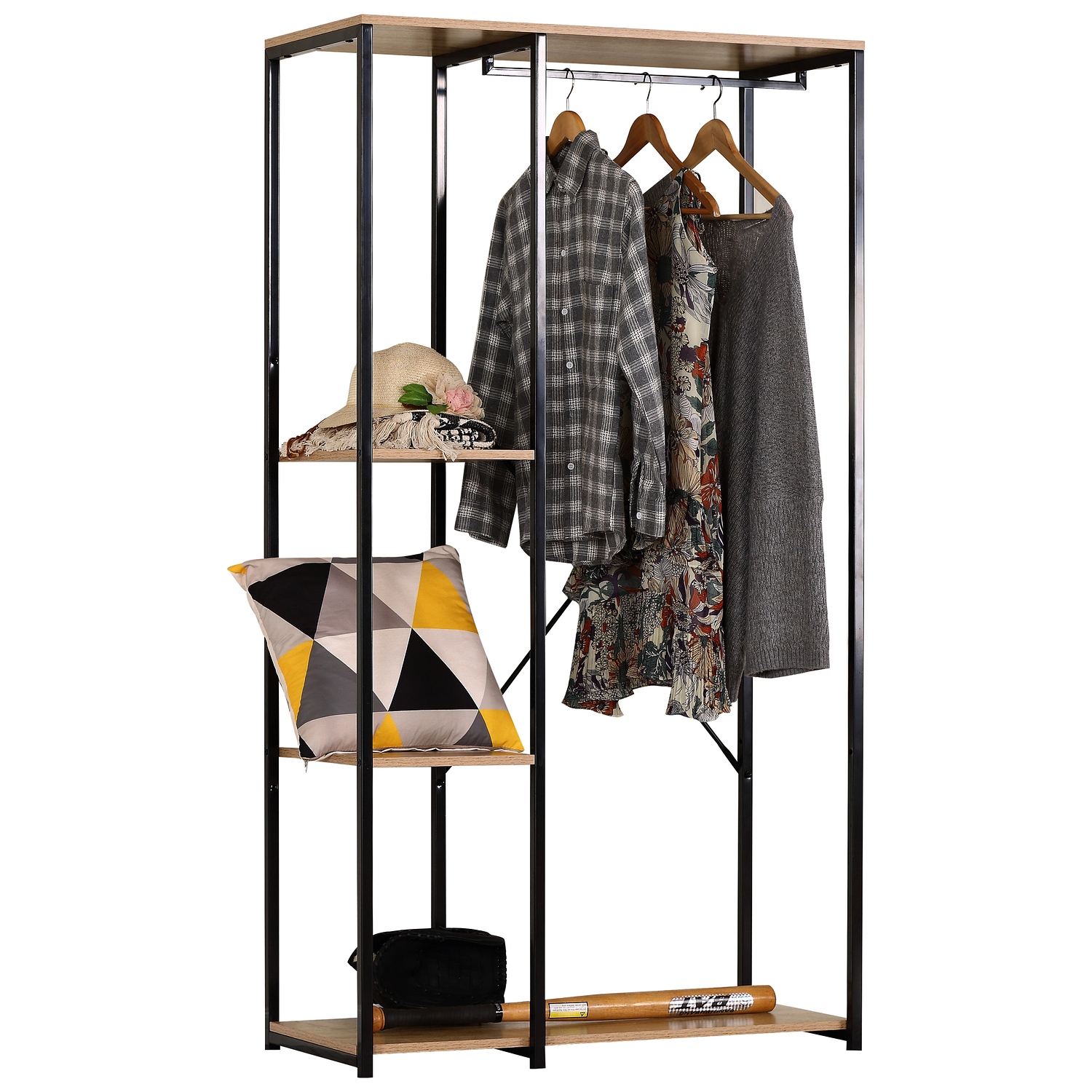 Κρεμάστρα Δαπέδου ArteLibre BINARY Δρυς/Μαύρο Μοριοσανίδα/Μέταλλο 90x40x167cm