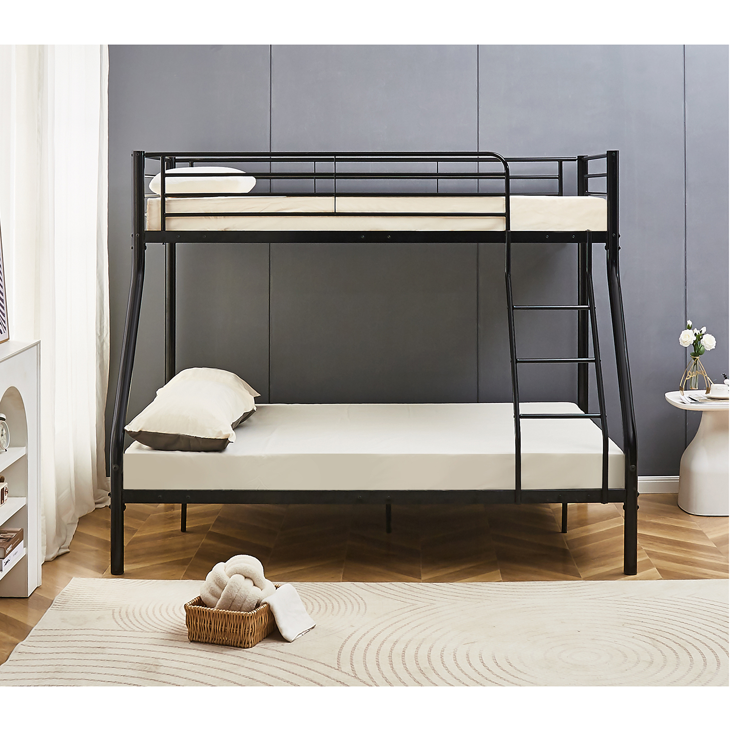Η κουκέτα OSAGE προσφέρει μια μοντέρνα και πρακτική λύση για κάθε δωμάτιο, ιδανική για οικογένειες ή φιλοξενούμενους. Το μαύρο μεταλλικό πλαίσιο προσδίδει μια κομψή και διαχρονική αισθητική, ενώ η μοναδική της σχεδίαση επιτρέπει τη χρήση διαφορετικών μεγεθών στρώματος, προσφέροντας ευελιξία και άνεση. Ιδανική για μικρούς χώρους, αυτή η κουκέτα εξοικονομεί χώρο χωρίς να θυσιάζει την άνεση.