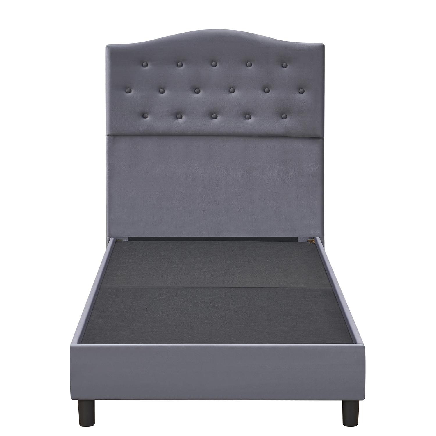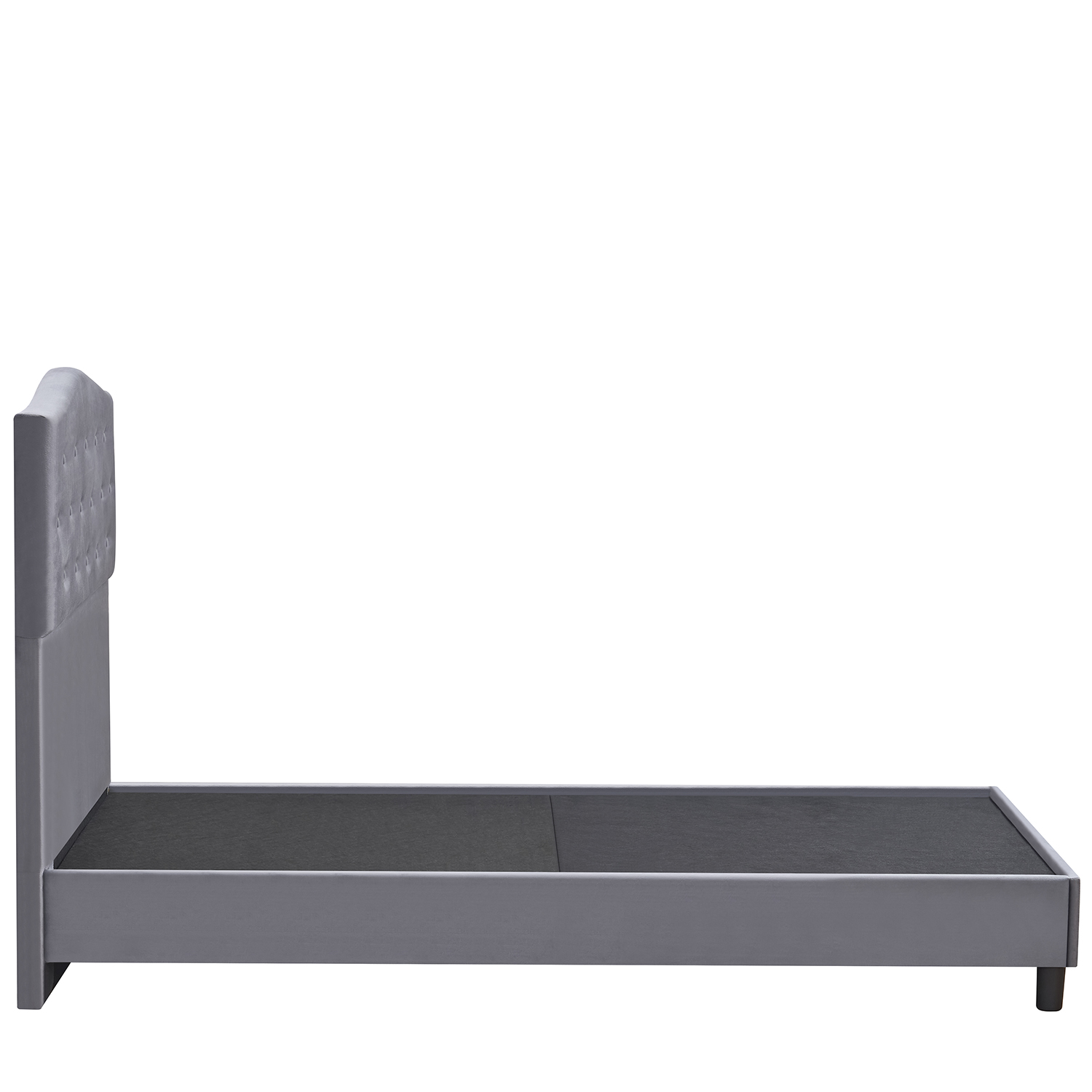 Το μονό κρεβάτι JUNIPER συνδυάζει κομψότητα και άνεση με το γκρι ύφασμα και το καπιτονέ κεφαλάρι του. Το κρεβάτι αυτό προσφέρει μια σύγχρονη και φιλόξενη αίσθηση, ιδανική για κάθε υπνοδωμάτιο. Το καμπύλο σχέδιο του κεφαλαριού προσθέτει μια διακριτική πινελιά πολυτέλειας, κάνοντάς το το κεντρικό σημείο στο δωμάτιο.