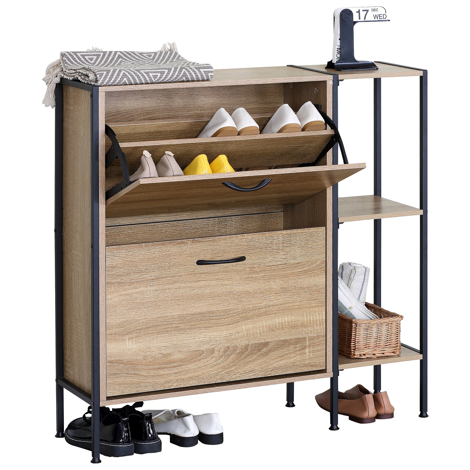 Παπουτσοθήκη ArteLibre ALDERWYN Με Πλαϊνό Ράφι Δρυς/Μαύρο Μοριοσανίδα/Μέταλλο 88x24x87cm