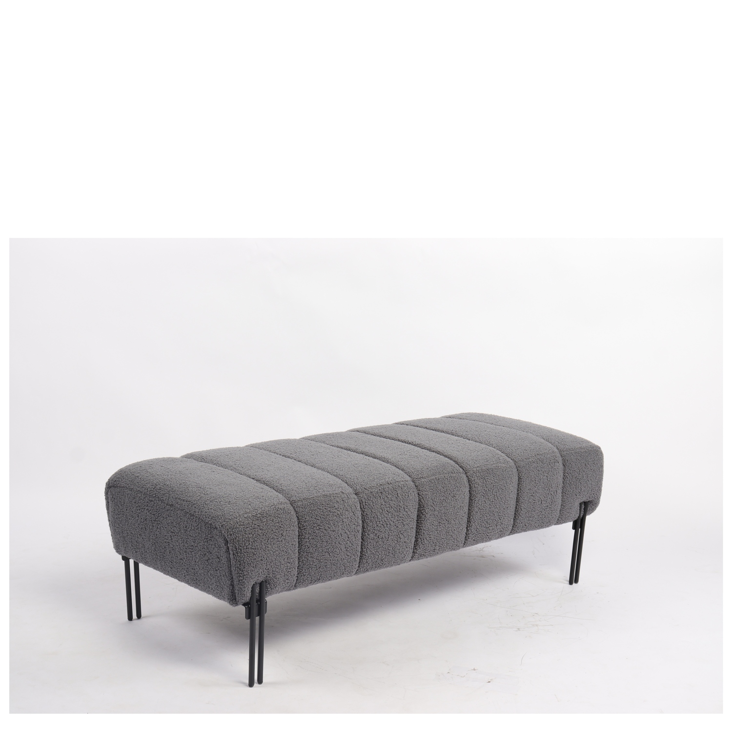 Κατασκευασμένο από υψηλής ποιότητας ύφασμα teddy και μαύρα μεταλλικά πόδια, το παγκάκι συνδυάζει άνεση και ανθεκτικότητα, προσφέροντας ένα κομψό και μοντέρνο στυλ.