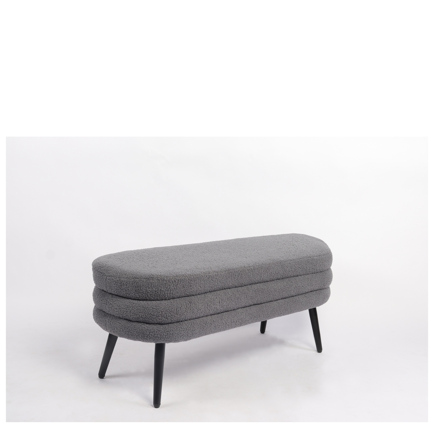 Κατασκευασμένο από υψηλής ποιότητας ύφασμα teddy και μαύρα μεταλλικά πόδια, το παγκάκι συνδυάζει άνεση και ανθεκτικότητα, προσφέροντας ένα κομψό και μοντέρνο στυλ.
