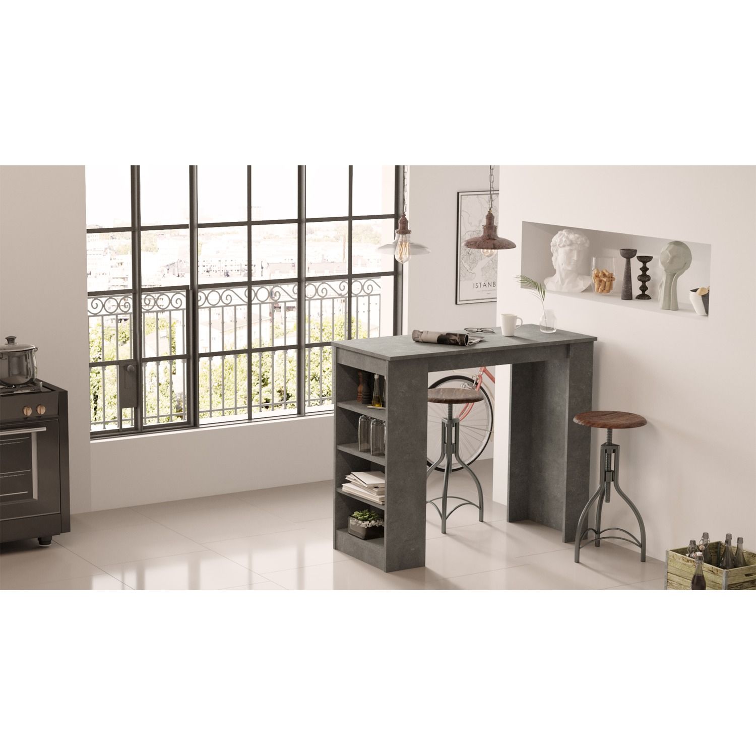 Ένα τραπέζι bar που συνδυάζει λειτουργικότητα με στυλ σε ένα μοντέρνο σύνολο για την τραπεζαρία σας. Η επιφάνεια του είναι υψηλής αντοχής που καταλήγει σε δύο πλαϊνά πόδια με αποθηκευτικούς χώρους . Μια μοντέρνα και ιδιαίτερη επιλογή που θα απογειώσει τον χώρο σας με το μοναδικό στυλ του.