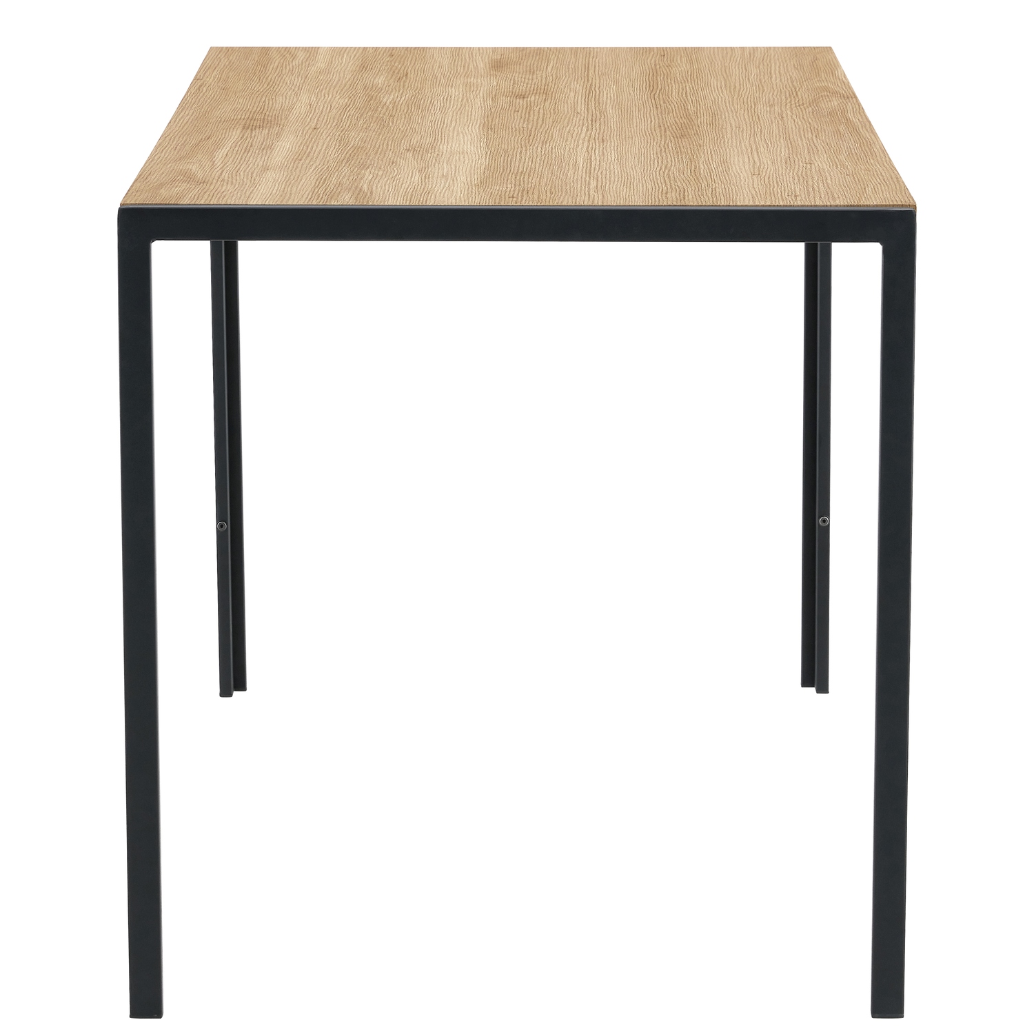 Κατασκευασμένο από μοριοσανίδα υψηλής ποιότητας με φινίρισμα Sonoma και ανθεκτικό μαύρο μέταλλο, το τραπέζι εξασφαλίζει σταθερότητα και αντοχή στη χρήση. Τα υλικά του είναι ανθεκτικά στις καθημερινές φθορές.