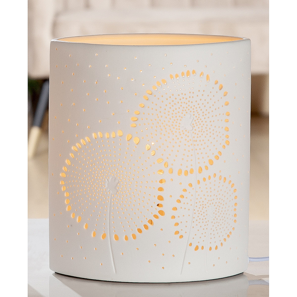 Λάμπα επιτραπέζια εκλειπτική με διακόσμηση λουλούδι λευκό πορσελάνη 10x17x20cm.