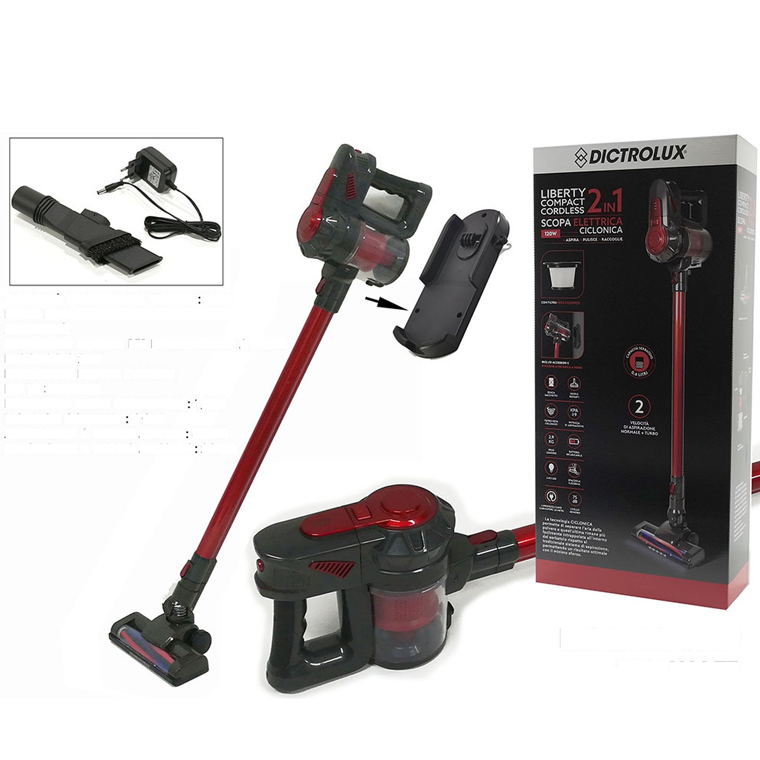 Σκούπα Dictrolux Liberty Compact 2in1 Ηλεκτρική Ricaricabile 120W Κόκκινη/Μαύρη 0.6l
