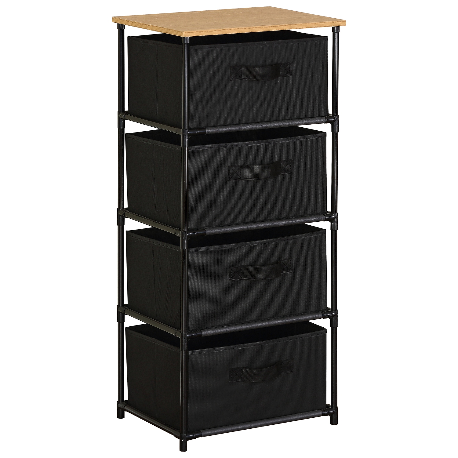 Συρταριέρα ArteLibre MIFUNE Με 4 Συρτάρια Μαύρο/Δρυς Μέταλλο/Non-Woven/Μοριοσανίδα 40x30x89cm