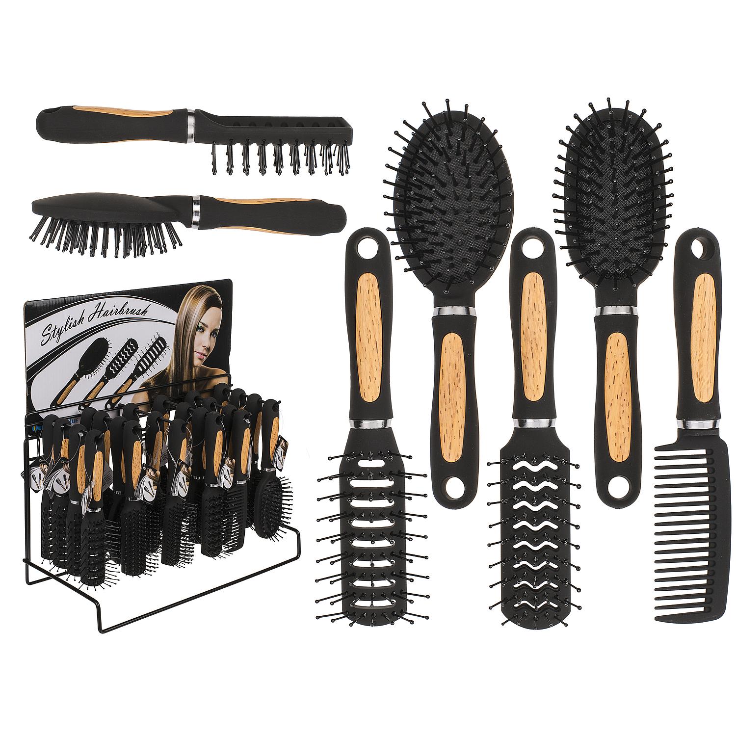 Βούρτσα μαλλιών μαύρο/φυσικό πλαστικό 18cm σε 6 τύπους.