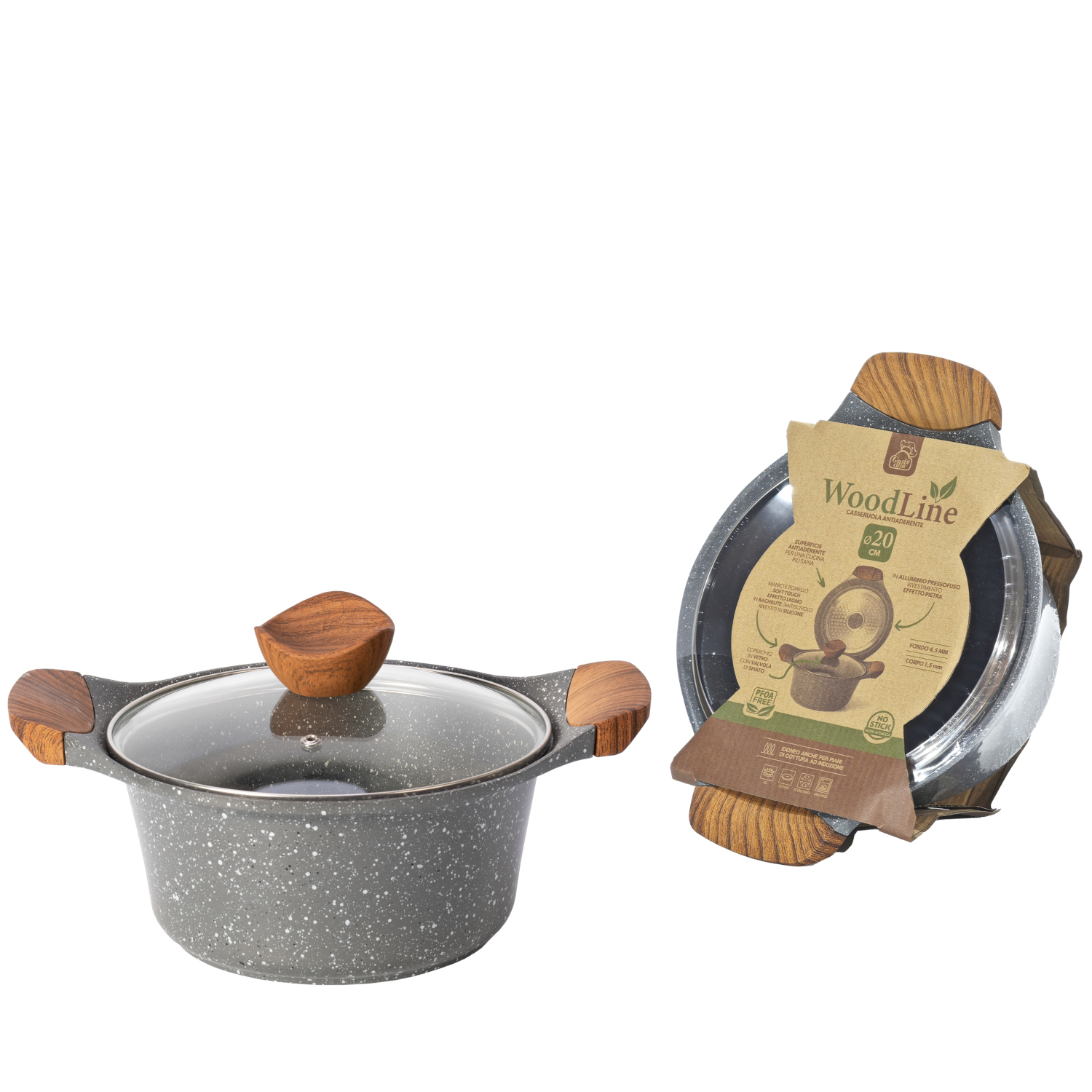 Κατσαρόλα αντικολλητική αλουμινίου με γυάλινο καπάκι WoodLine φ20cm.