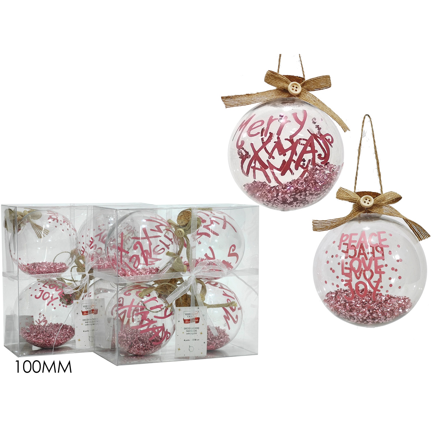 Μπάλα με glitter στο εσωτερικό διάφανο/ροζ γυαλί Φ10cm σετ 4τμχ σε 2 σχέδια.