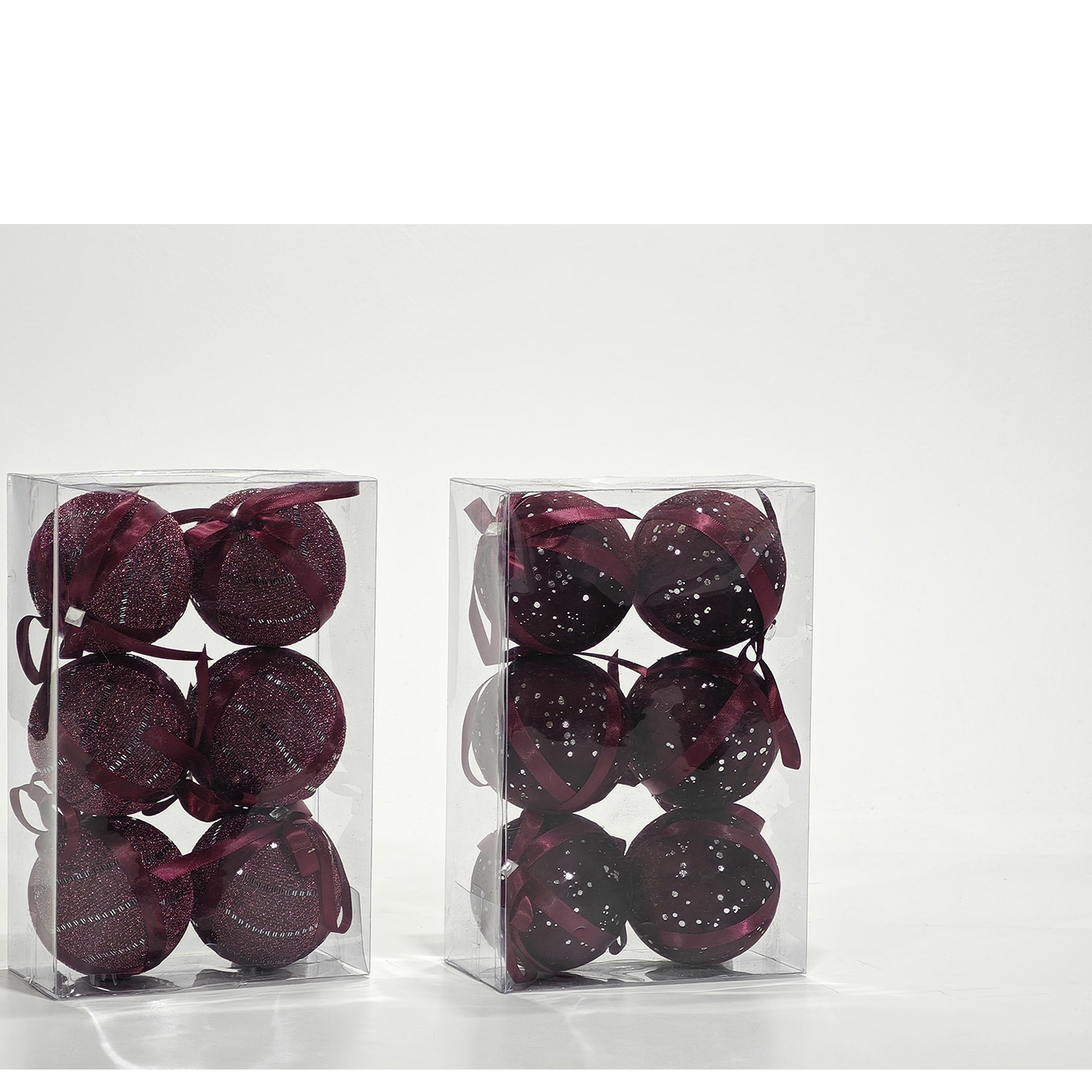 Χριστουγεννιάτικες Μπάλες Μπορντό 80mm Σετ 6Τμχ Σε 2 Σχέδια