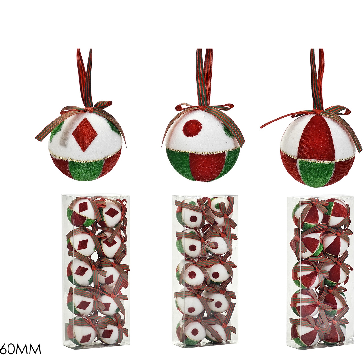 Χριστουγεννιάτικη Μπάλα 60mm Σετ 10Τμχ Σε 3 Σχέδια