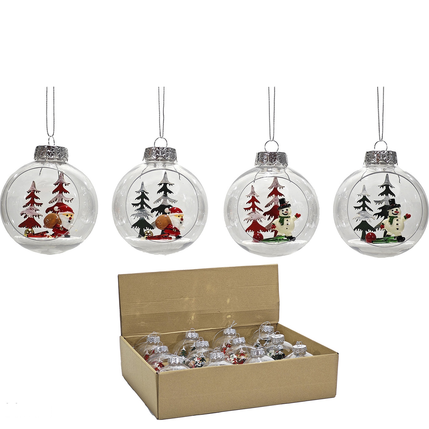 Προσθέστε μια μαγευτική και γιορτινή αίσθηση στο χριστουγεννιάτικο δέντρο σας με αυτές τις μπάλες. Με διάμετρο 80mm, είναι διαθέσιμο σε τέσσερα διαφορετικά σχέδια με εσωτερικές χριστουγεννιάτικες σκηνές, όπως χιονάνθρωποι και δέντρα. Ιδανικές για να δημιουργήσουν μια μοναδική και εντυπωσιακή διακόσμηση, που θα ενθουσιάσει τους καλεσμένους σας.
