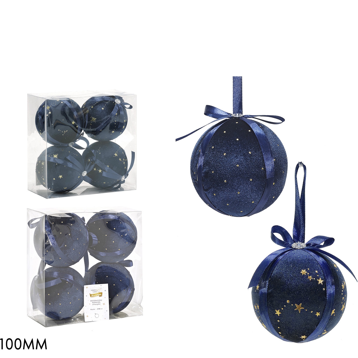Χριστουγεννιάτικη Μπάλα Μπλε 100mm Σετ 4Τμχ Σε 2 Σχέδια