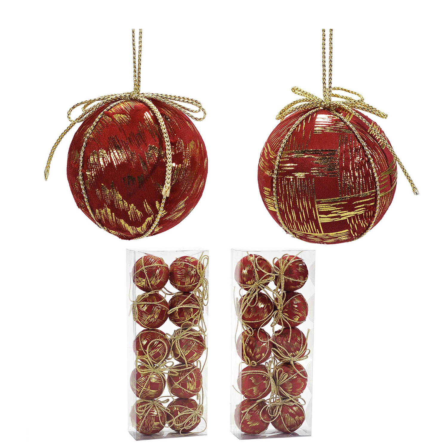 Χριστουγεννιάτικη Μπάλα Κόκκινο 60mm Σετ 10Τμχ Σε 2 Σχέδια