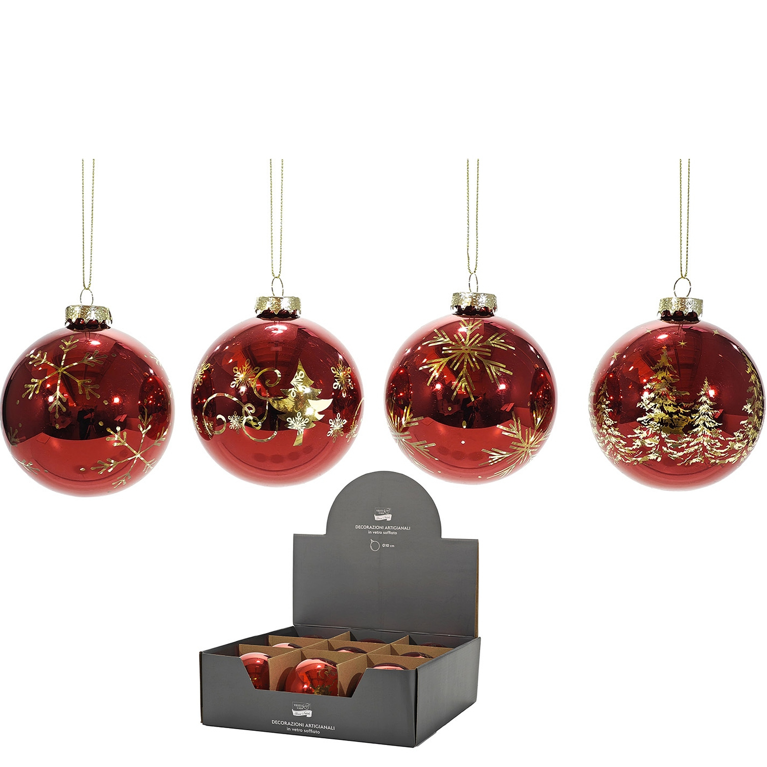 Χριστουγεννιάτικη Μπάλα Κόκκινο/Χρυσό 100mm Σε 4 Σχέδια