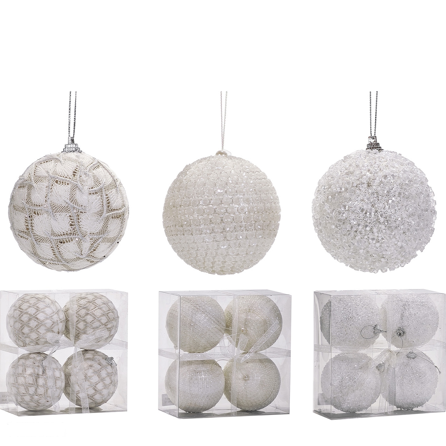 Χριστουγεννιάτικη Μπάλα Λευκό 100mm Σετ 4Τμχ Σε 3 Σχέδια