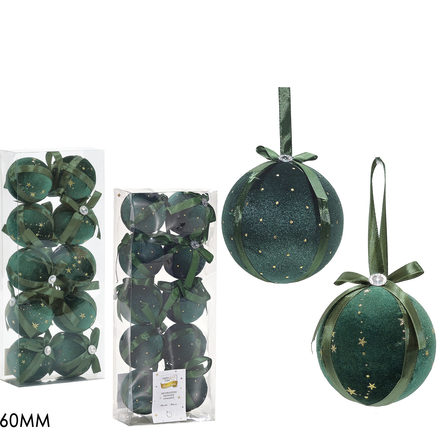 Σετ 10 Χριστουγεννιάτικες Μπάλες 60mm Πράσινο Σε 2 Σχέδια