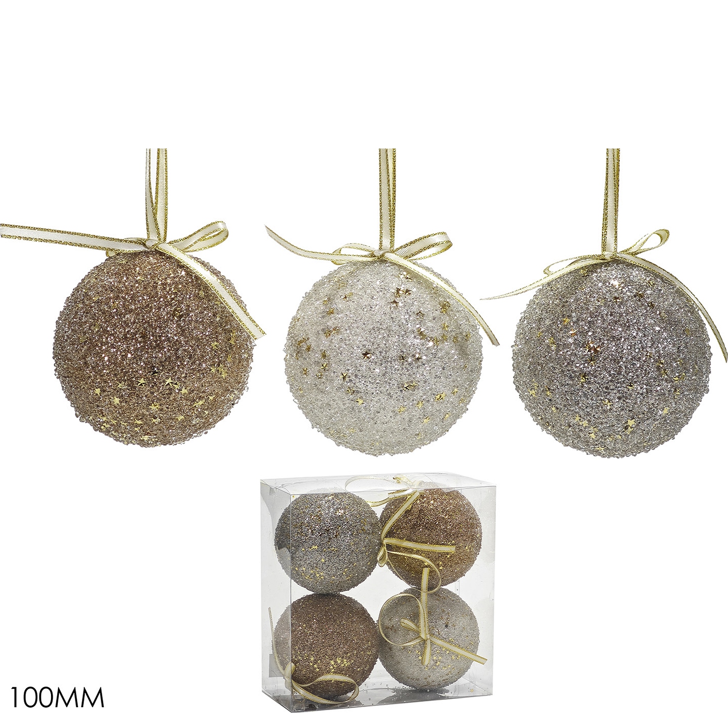 Προσθέστε μια κομψή και λαμπερή πινελιά στο χριστουγεννιάτικο δέντρο σας με αυτές τις μεγάλες μπάλες σε rose gold χρώμα. Με διάμετρο 100mm, είναι διαθέσιμο σε τέσσερα τεμάχια, διακοσμημένα με γκλίτερ και χρυσές λεπτομέρειες. Ιδανικές για να προσθέσουν λάμψη και πολυτέλεια στη διακόσμησή σας, δημιουργώντας μια εορταστική ατμόσφαιρα που θα ενθουσιάσει τους καλεσμένους σας.