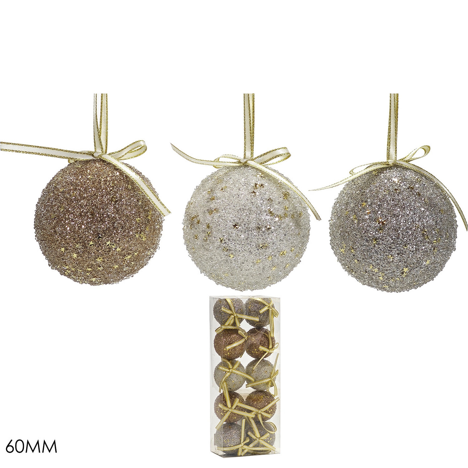 Προσθέστε μια κομψή και λαμπερή πινελιά στο χριστουγεννιάτικο δέντρο σας με αυτές τις μπάλες σε rose gold χρώμα. Με διάμετρο 60mm, είναι διαθέσιμο σε δέκα τεμάχια, διακοσμημένα με γκλίτερ. Ιδανικές για να προσθέσουν λάμψη και πολυτέλεια στη διακόσμησή σας, δημιουργώντας μια εορταστική ατμόσφαιρα που θα ενθουσιάσει τους καλεσμένους σας.