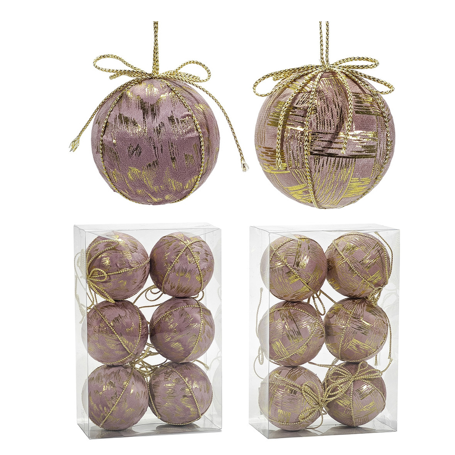 Χριστουγεννιάτικη Μπάλα Ροζ 80mm Σετ 6Τμχ Σε 2 Σχέδια