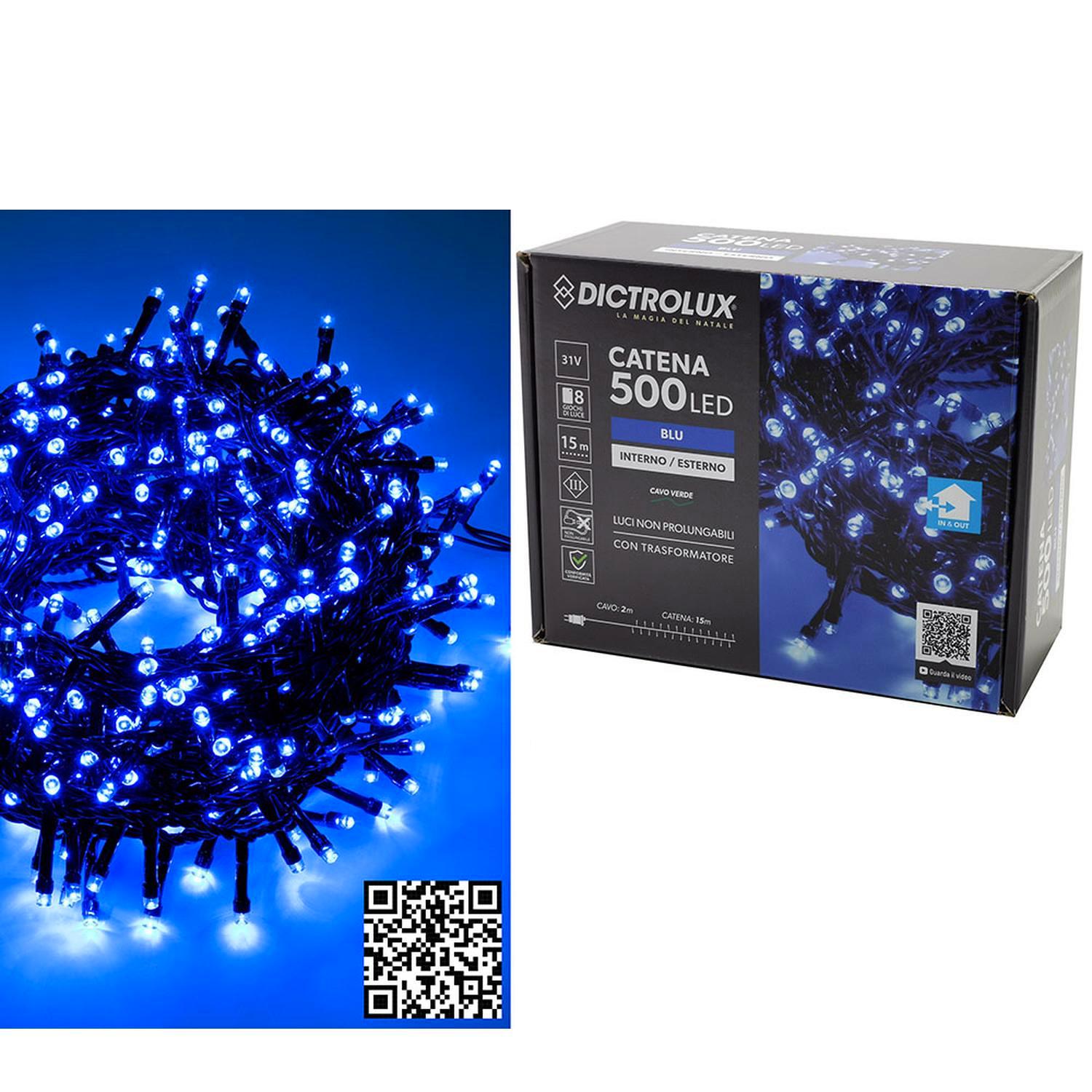 500 LED εσωτ. & εξωτ. χώρου με 8 προγράμματα και μετασχηματιστή μπλε φως πράσινο καλώδιο μη επεκτεινόμενο ip44 31v 17m.
