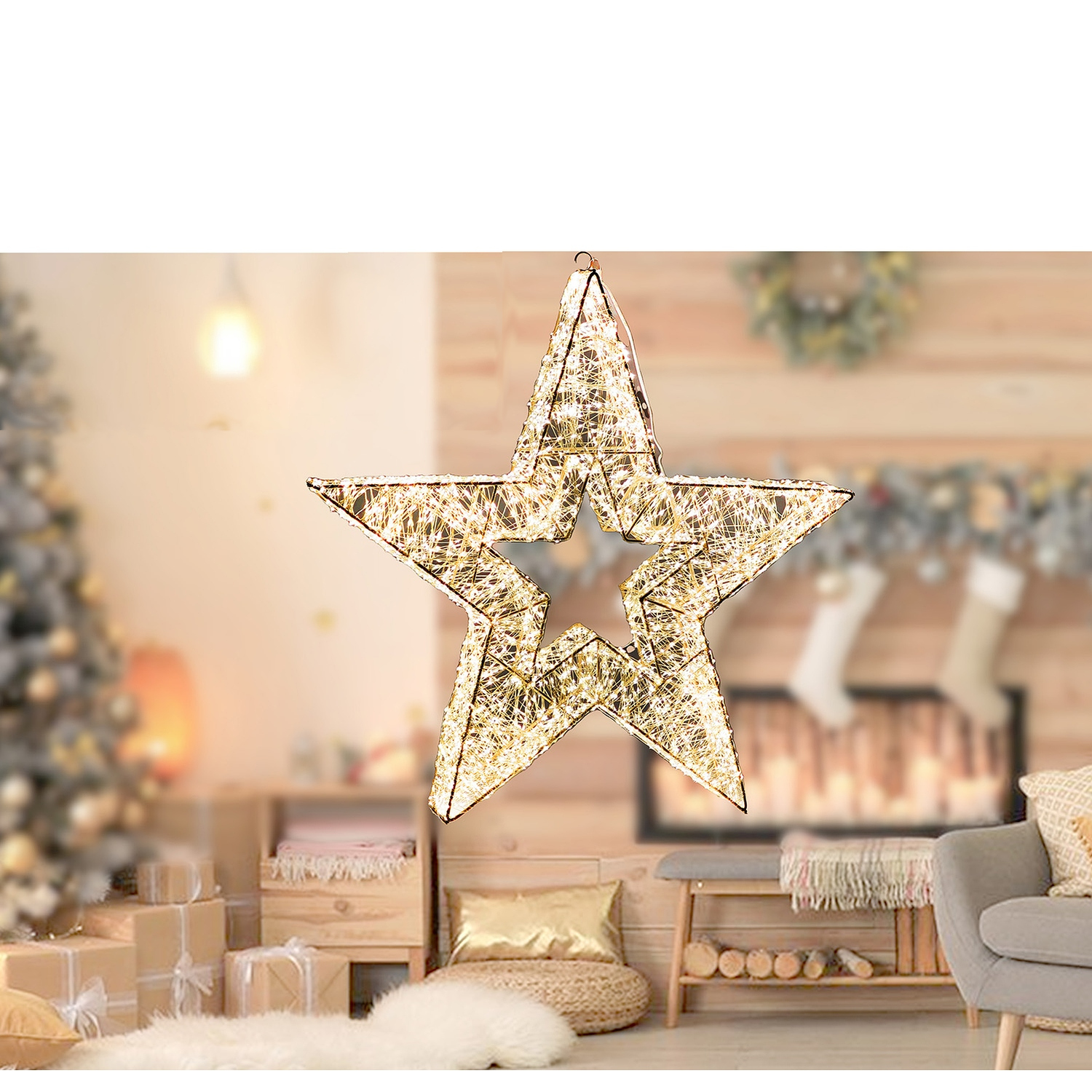 Δημιουργήστε μια εντυπωσιακή και μαγευτική ατμόσφαιρα στο σπίτι σας με αυτό το χριστουγεννιάτικο αστέρι διακοσμημένο με 5000 MicroLED σε θερμό λευκό. Με ύψος 60cm, το αστέρι προσφέρει λάμψη και ζεστασιά στη διακόσμησή σας. Ιδανικό για να κρεμαστεί σε τοίχους, παράθυρα ή οποιοδήποτε σημείο του σπιτιού σας που χρειάζεται μια γιορτινή πινελιά.