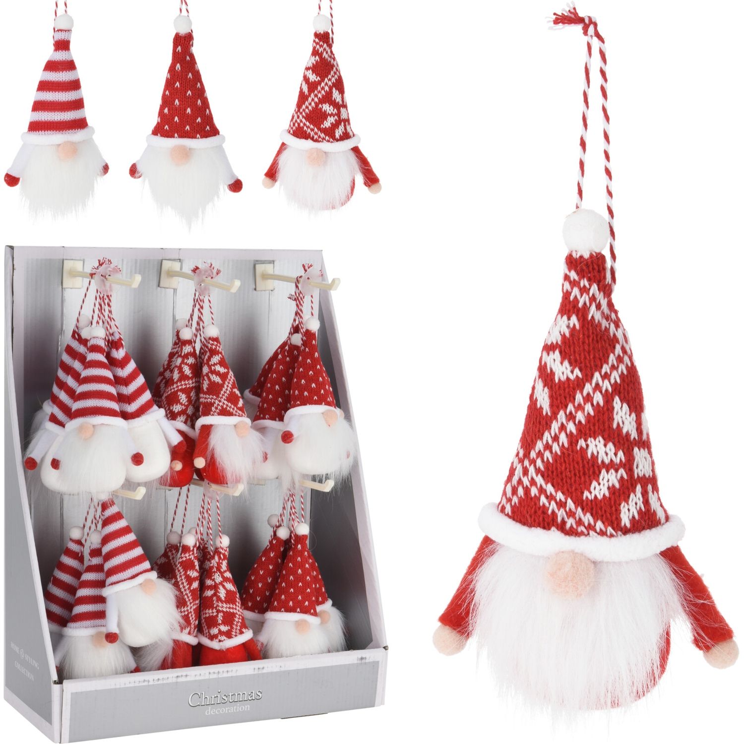 Στολίδι κρεμαστό νάνος λούτρινο κόκκινο/λευκό 53x35x136mm σε 3 σχέδια.