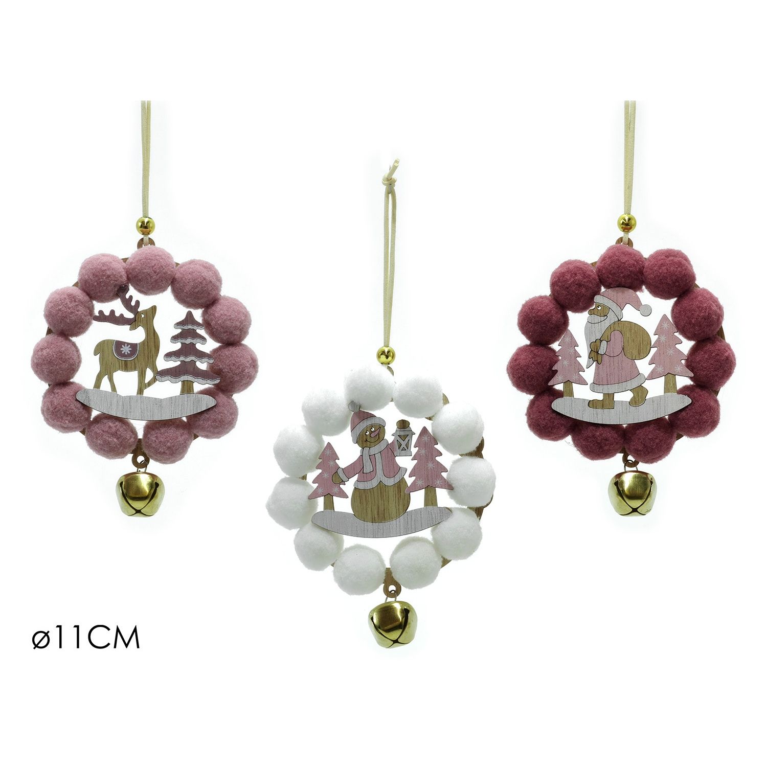 Στολίδι κρεμαστό με καμπανάκι ροζ/λευκό Φ11cm σε 3 σχέδια.